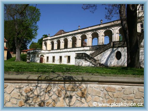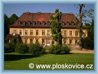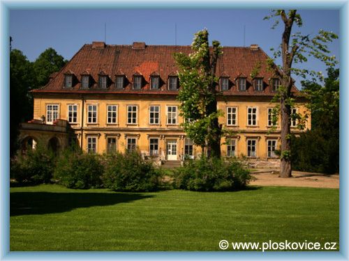 státního zámku je velice navštěvovanou obcí. Jednopatrový zámek, přibližně čtvercového půdorysu byl postaven jako letní rezidence pro velkovévodkyni Annu Marii Františku Toskánskou na počátku 18. století. Po roce 1850 byl zámek zvýšen o jedno patro a byly přistavěny dvě správní budovy. V přízemí jižní strany zámku se nachází umělé vodní jeskyně, tzv. grotty. Celek grott má šest částí, z nichž jsou čtyři prostory pod hlavní budovou a dvě další na stranách, částečně pod arkádovými křídly. Při návštěvě ploskovického zámku nelze opominout ani zámecký park, který má rozlohu 8 ha. Zámek s přilehlými arkádami pak rozděluje zahradu na horní a dolní. Obou částem vévodí uprostřed širokých hlavních cest dvě elipsovité kašny s figurálními vodotrysky. Zajímavostí ze současnosti pak je, že se zámek Ploskovice stal dějištěm několika filmů a pohádek, mimo jiné i známé pohádky Princ a Večernice.